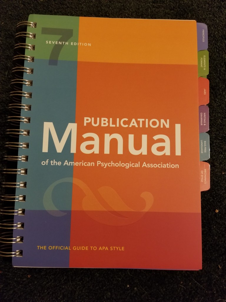As I’ve noted on my Facebook page, and hinted at in a previous post, APA has published their 7th edition of the Publication Manual. I received my copy in early October and have spent some time going through it. I have compiled a list of 20 changes that I think are noteworthy for those of you transitioning from the 6th edition. In my opinion, this manual is a good improvement over the 6th edition and responds to various issues that 21st century writing has presented.